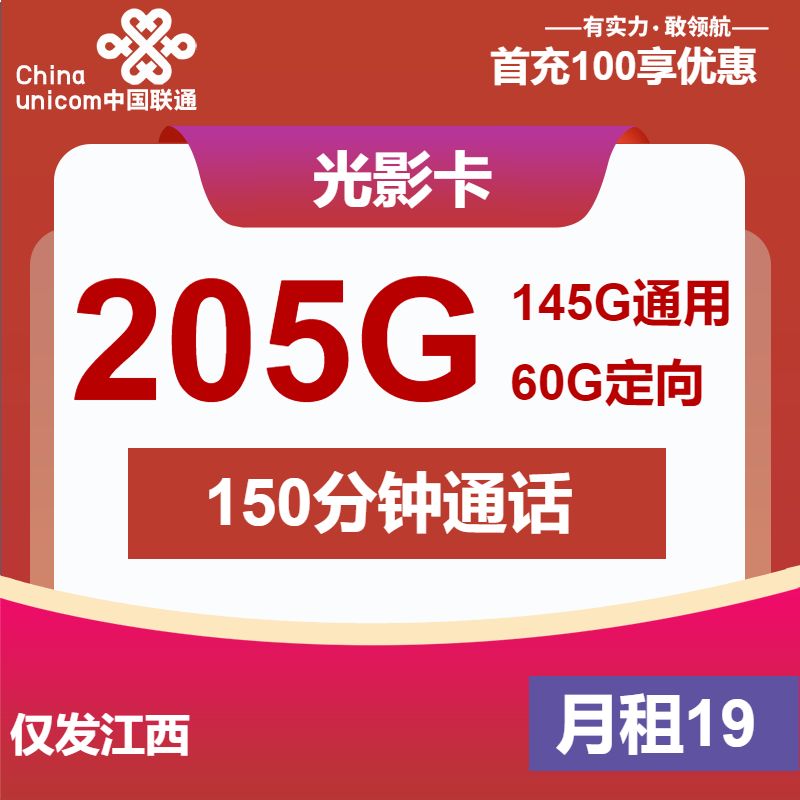 联通光影卡是近期江西联通官方发布的一张19元月租的手机流量卡。每个月19元月租包含了145G全国通用流量和60G全国定向流量加150分钟全国通话。号卡套餐支持5G网络,两年优惠套餐流量卡。下面就让优卡网带领大家来看看联通光影卡套餐详细介绍和申请方法。