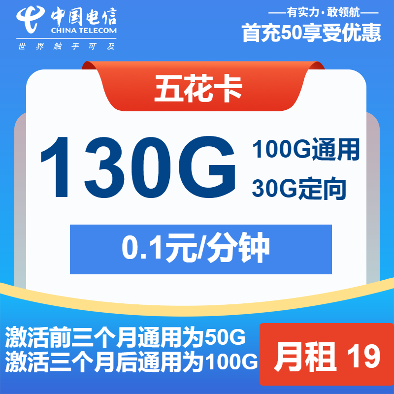 电信五花卡是近期中国电信官方发布的一张19元月租的手机流量卡,每个月19月租包含了100G全国通用流量和30G全国定向流量。两年优惠套餐,号卡套餐支持5G网络。下面就让优卡网带领大家来看看电信五花卡套餐详细介绍和申请方法。