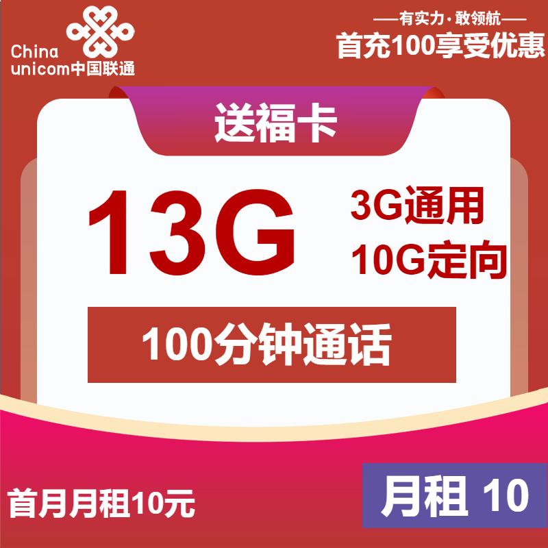 客服帮助:联通送福卡10元月租包3G通用+10G定向+100分钟通话