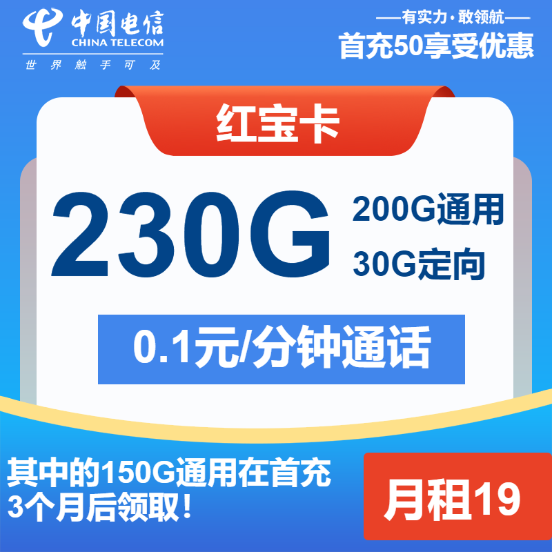 电信红宝卡是近期中国电信官方发布的一张19元月租的手机流量卡,每个月19月租包含了200G全国通用流量和30G全国定向流量。长期优惠套餐,号卡套餐支持5G网络。下面就让优卡网带领大家来看看电信红宝卡套餐详细介绍和申请方法。