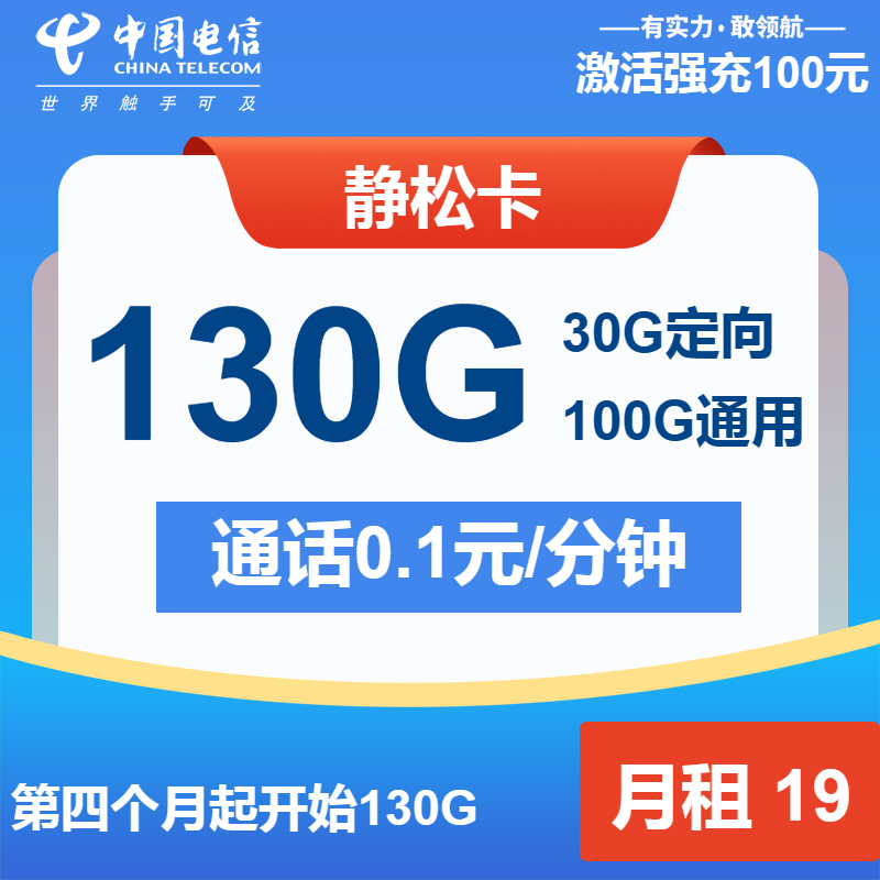 电信静松卡是近期中国电信官方发布的一张19元月租的手机流量卡,每个月19月租包含了100G全国通用流量和30G全国定向流量。号卡套餐支持5G网络。下面就让优卡网带领大家来看看电信静松卡套餐详细介绍和申请方法。