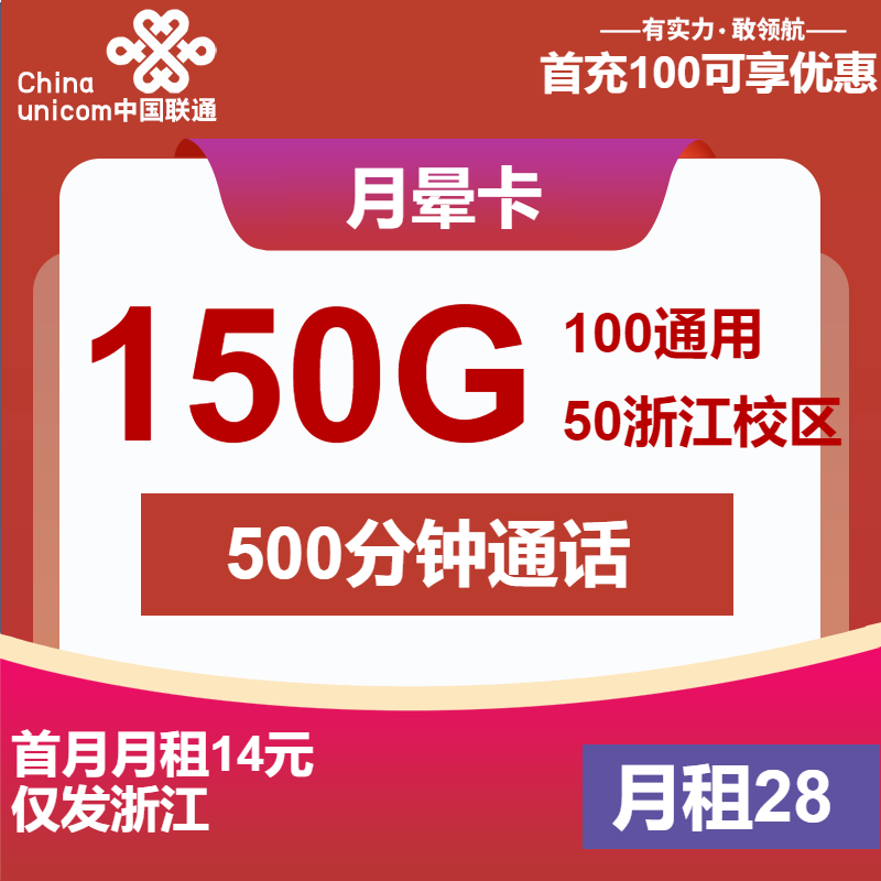 联通月晕卡是近期就浙江联通官方发布的一张28元月租的手机流量卡。每个月28元月租包含了100G全国通用流量和50G校园流量加500分钟全国通话。号卡套餐支持5G网络,长期优惠套餐流量卡。下面就让优卡网带领大家来看看联通月晕卡套餐详细介绍和申请方法。
