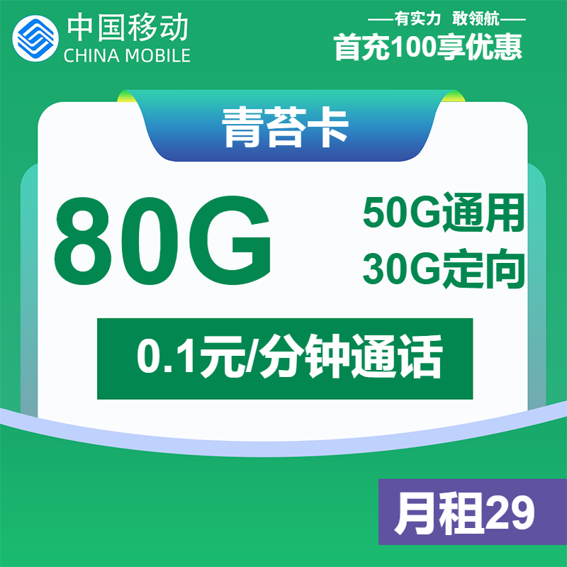 移动青苔卡是近期中国移动官方发布的一张29元月租的手机流量卡,每个月包含了50G全国通用流量和30G全国定向流量。号卡套餐支持5G网络。低月租且收货地就是归属地的套餐。下面就让优卡网带领大家来看看移动青苔卡套餐详细介绍和申请方法。
