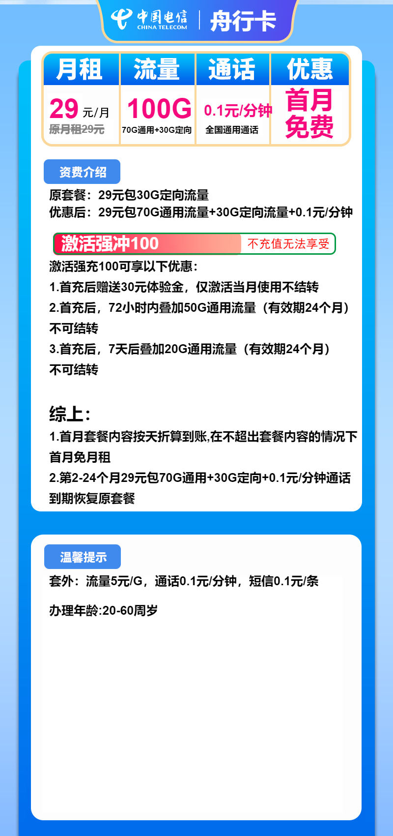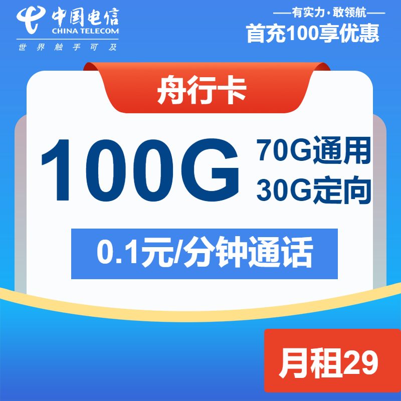 电信舟行卡原套餐是29元/月,包30G定向流量。