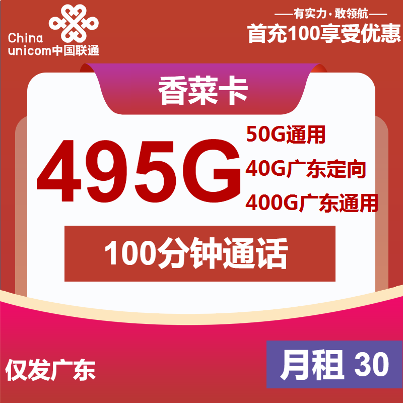 联通香菜卡是近期就广东联通官方发布的一张30元月租的手机流量卡。每个月30元月租包含了55G全国通用流量和400G广东通用流量加40G广东定向流量加100分钟全国通话。号卡套餐支持5G网络,长期优惠套餐流量卡。下面就让优卡网带领大家来看看联通香菜卡套餐详细介绍和申请方法。