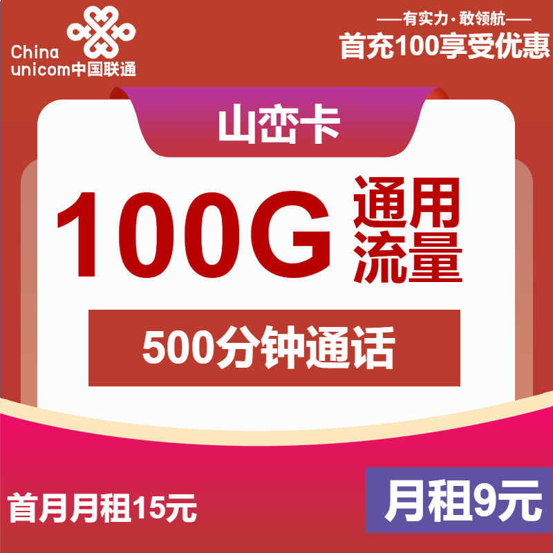 联通山峦卡是近期中国联通官方发布的一张9元月租的手机流量卡。每个月9元月租包含了100G全国通用流量和500分钟全国通话。号卡套餐支持5G网络,长期优惠套餐流量卡。下面就让优卡网带领大家来看看联通山峦卡套餐详细介绍和申请方法。
